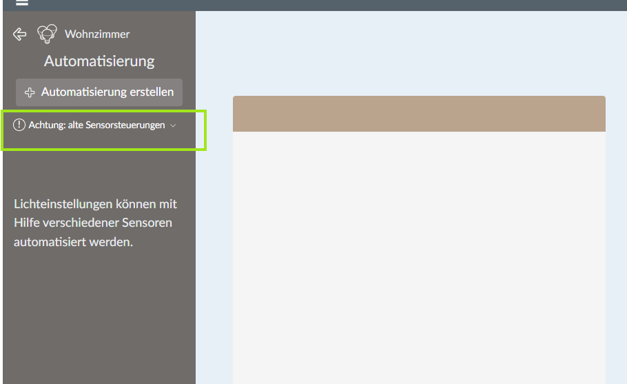 1. The UI Bug (The Blocker): I cannot delete my old “Sensor Controls”. The warning message appears “Achtung: alte Sensorsteuerungen”, but the page to manage or delete these old controls does not load. The content area remains blank (see Screenshot). This means I cannot clean up my old, conflicting rules.