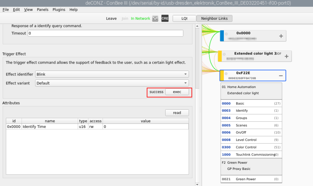 I am however able to communicate with the bulb e.g. from the Identify-Cluster, and it joins Zigbee Mesh with no issues: